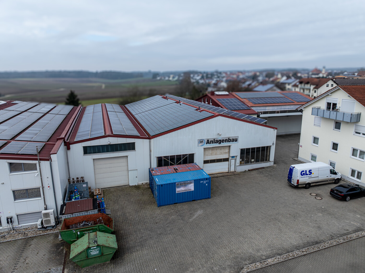 Stahlskelettbau, Trapezblechverkleidung, Bodenplatte, Tore,
